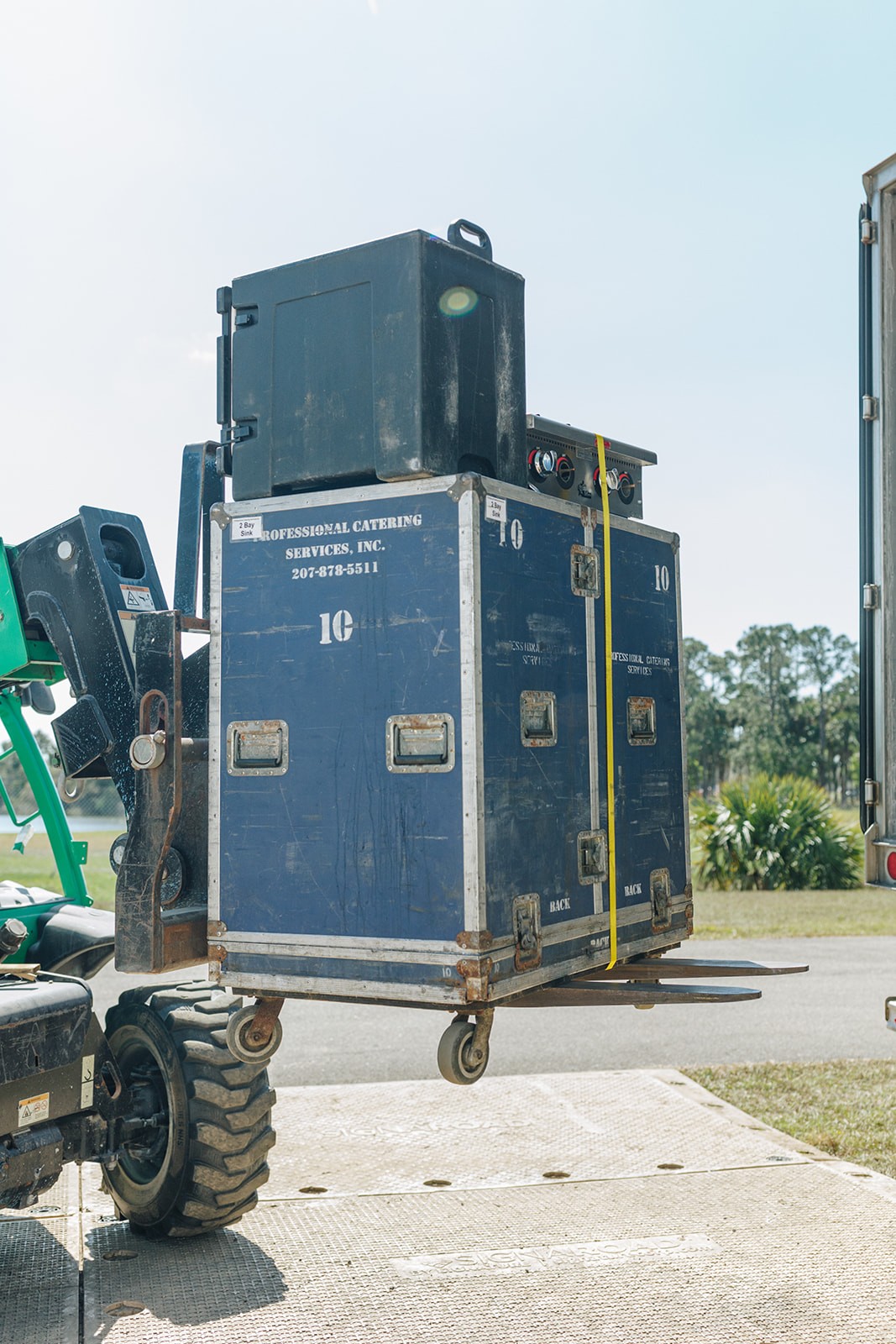 Every case, cable, and table goes up with practiced rhythm. The coffee’s hot, the music’s on, and before you know it, the whole crew’s swapping stories in line. You’re serving yourself the best food in the business!